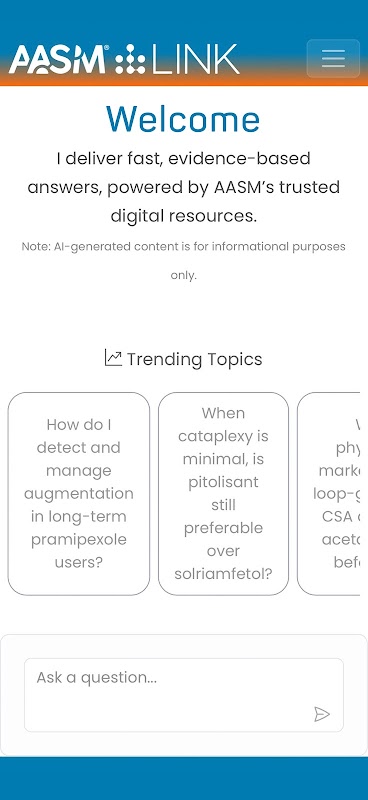 نُقدّم لكم AASM Link، المنصة الرائدة المدعومة بالذكاء الاصطناعي، والمصممة خصيصًا لمتخصصي طب النوم. سواءً كنتَ طبيبًا متمرسًا، أو باحثًا، أو طالبًا، تُوفّر AASM Link وصولًا سلسًا إلى إرشادات الممارسة السريرية، ومعايير الرعاية، ومقاييس الجودة، مما يُساعدك على البقاء على اطلاع دائم وتقديم أعلى مستوى من رعاية المرضى.