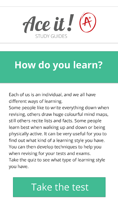 Ace it! Study Guides : What's Your Learning Style? 1.0.0