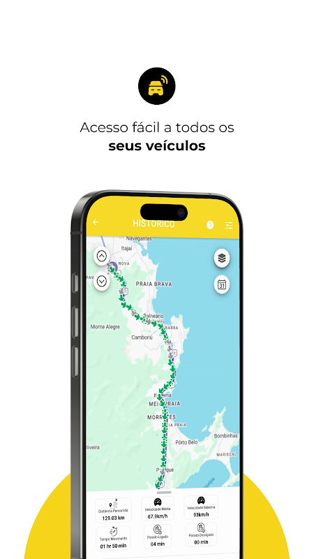 • التاريخ الكامل، مما يسمح لك بتحديد وقت البدء ووقت الانتهاء المطلوب، مع قائمة كاملة بجميع المواضع التي تم العثور عليها، مع تسليط الضوء على الوقت المستغرق في التوقف أو الإيقاف في كل موضع. ملخص التاريخ يشير إلى إجمالي الكيلومترات، ووقت الحركة، ووقت التوقف، ووقت التوقف، ومتوسط السرعة والحد الأقصى.