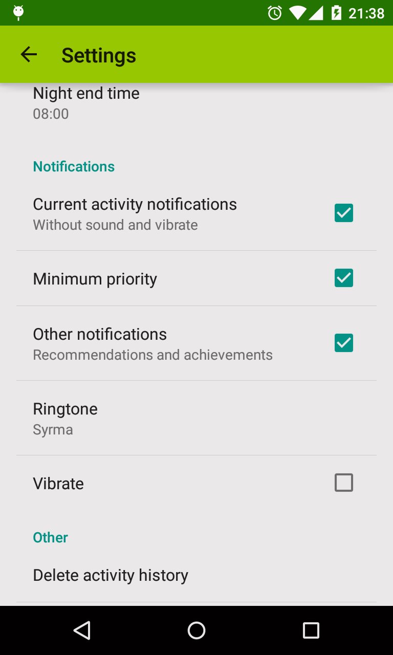 Application should be compatible with any phone or tablet with Google Play installed but may not detect activity updates correctly, it depends on actual device hardware!