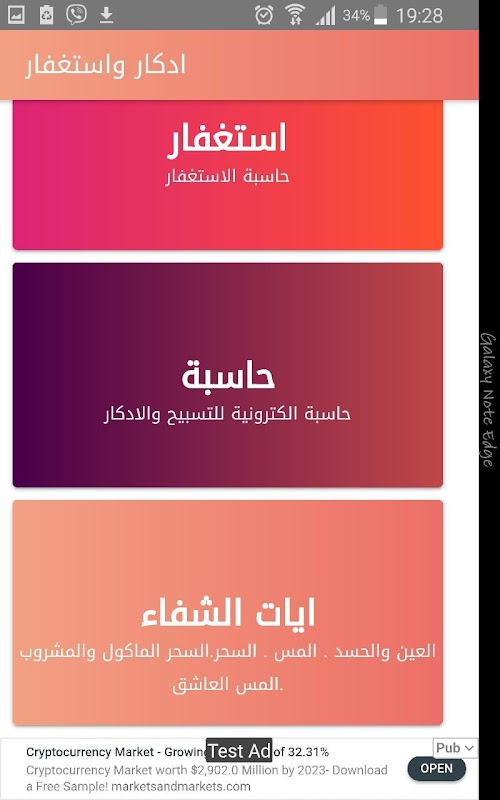 تطبيق خاص لادكار المسلم والاستغفار وحاسبة الكترونية