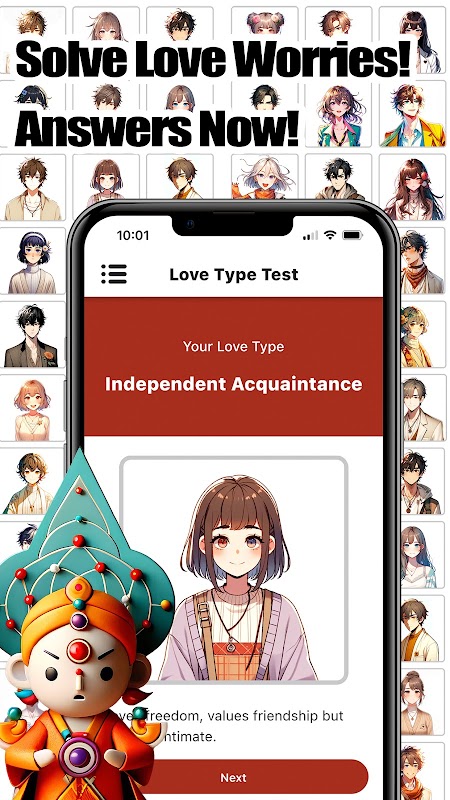 - **تحديد نمط الحب**: باستخدام 60 سؤالًا يعتمد على علم النفس، يحدد التطبيق نمط الحب الخاص بك، ويحتضن مفهوم المصير الرومانسي.