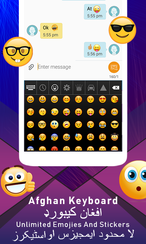 The new Afghan Pashto English Keyboard is the new way to use your default mobile keyboard with multiple colors, beautiful backgrounds, emoji keyboard for mobile and much more. This is best keyboard theme that likely compatible with android keyboard and best app to customize keyboard with new look. Download latest colorful theme keyboard with keyboard wallpaper to give change your phone look into a new way.