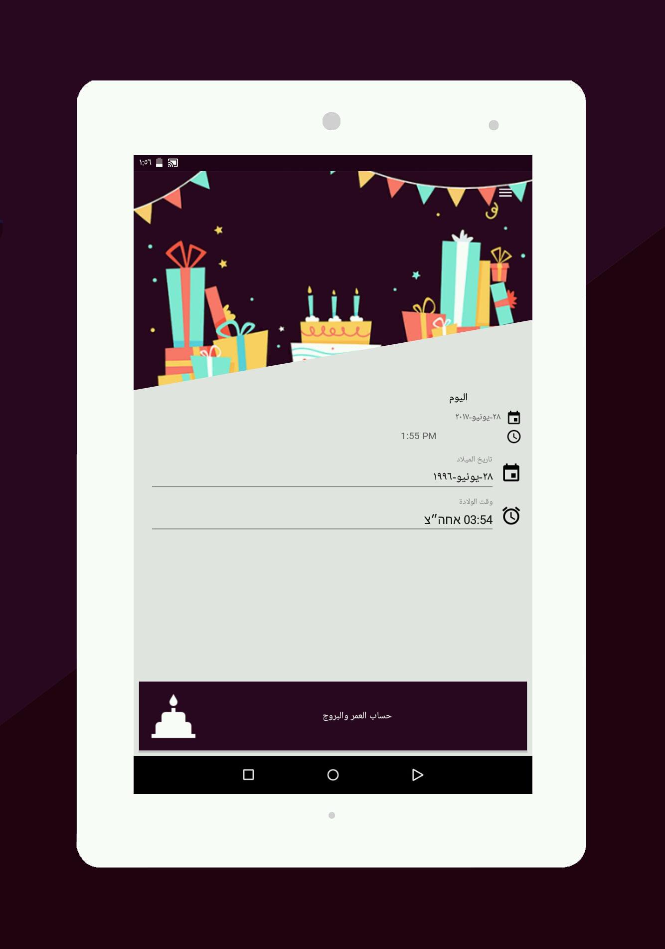 حاسبة العمر هو تطبيق بسيط وأنيق. العمر حاسبة يروي عمرك بالضبط في سنوات أشهر وأيام. آلة حاسبة العمر أيضا بحساب البروج الخاص بك والسنة الصينية للولادة.