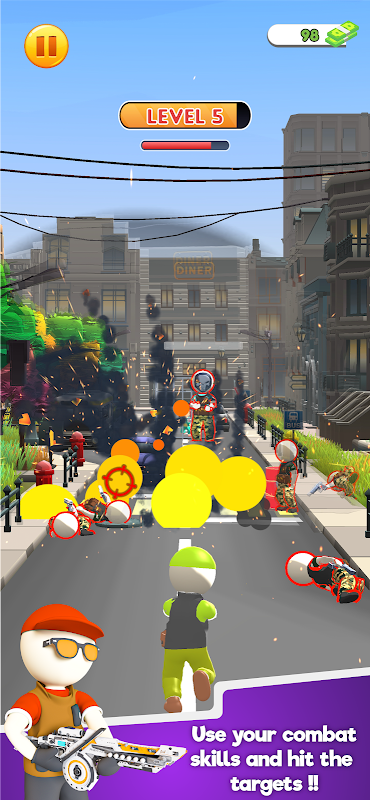 ولكن هنا يكمن التطور: يتباطأ الوقت ليصبح زحفًا مثيرًا بينما تنخرط في عمليات إطلاق نار ملحمية مع الأعداء. استمتع بتجربة إثارة كل رصاصة، وكل حركة، وكل قرار محسوب بأسلوب الحركة البطيئة المذهل. بالدقة والمهارة، ستتمكن من القضاء على الخصوم، وضمان سلامة الرهائن وتأمين النصر للعدالة.