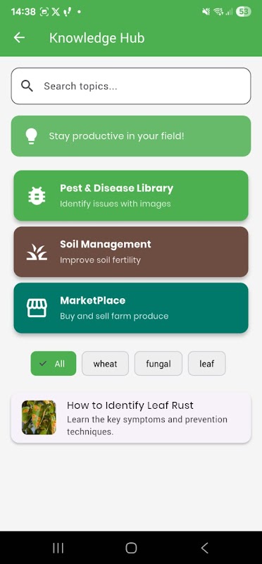 سواء كنت تواجه أمراضًا في المحاصيل، أو شكوكًا حول صحة التربة، أو ترغب في بيع منتجاتك محليًا، فإن AgriIntel يوفر لك رؤىً مدعومة بالذكاء الاصطناعي، وخبرة مجتمعية، وأدوات آنية في متناول يديك.