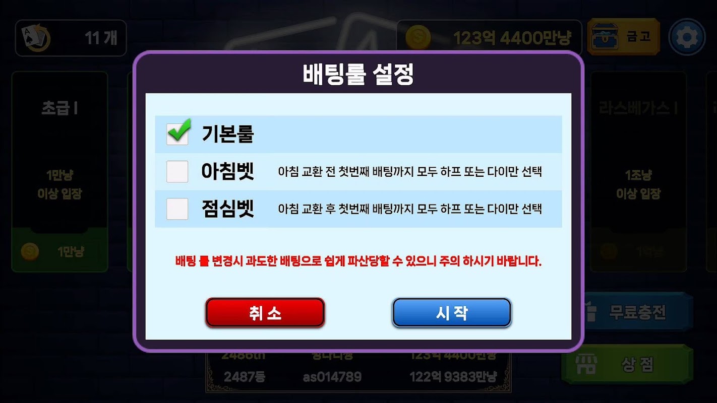 - يتم إعادة شحن رصيد اللعبة فورًا عند إفلاسك (يتم إعادة الشحن وفقًا لمستوى غرفة الإفلاس).