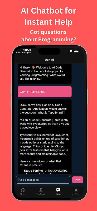 سواء كنت تريد كتابة برنامج نصي بلغة Python، أو إنشاء فئة Java، أو اختبار منطق C++، أو إنشاء وظيفة TypeScript، فإن هذا التطبيق يسمح لك ببساطة بوصف ما تريده باللغة الإنجليزية البسيطة والسماح للذكاء الاصطناعي بإجراء الترميز. مدعومًا بمحرك ذكاء اصطناعي متقدم ومحرر أكواد مدمج ومترجمين خاصين بلغة معينة، يعمل هذا التطبيق على تحويل الطريقة التي تتعلم بها الأكواد البرمجية وتبنيها وتجربتها.