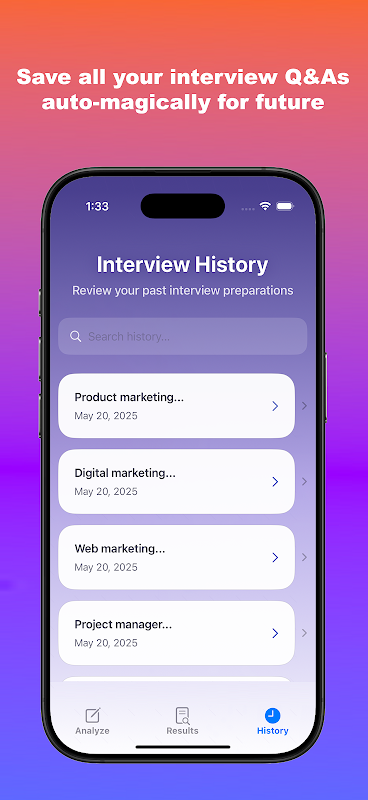 • الحفظ والمراجعة - يتم حفظ جميع الأسئلة والأجوبة تلقائيًا لكل مقابلة من مقابلاتك لدراستها لاحقًا.