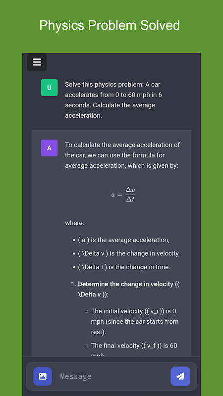سواء كنت بحاجة إلى حساب القوى، أو حل مشكلة التسارع، أو فهم سلوك الموجة، أو استكشاف تحولات الطاقة، فإن AI Physics Solver موجود لمساعدتك في كل خطوة. واجهته التفاعلية واستجاباته السريعة تجعله رفيقًا قيمًا للطلاب والمعلمين.