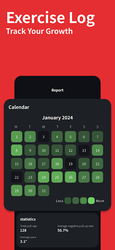 7. مستوى التمرين: يظهر في المستوى مستوى صعوبة تمارين الضغط والسحب التي قمت بها. حاول الوصول إلى مستوى أعلى!