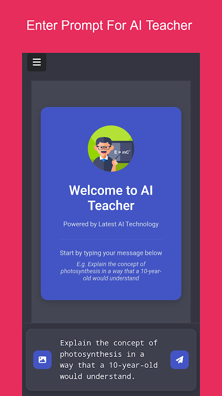 قم بتغيير الطريقة التي تتعلم بها باستخدام AI Teacher، مساعد التعلم المخصص لك. سواء كنت طالبًا أو محترفًا أو متعلمًا مدى الحياة، فقد تم تصميم هذا التطبيق لتبسيط المفاهيم المعقدة وجعل التعلم جذابًا ومتاحًا للجميع.