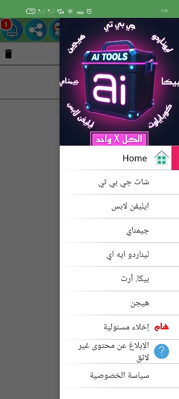 هذا التطبيق مستقل وغير تابع رسميًا لأي جهة أو شركة من مقدمي الخدمات المذكورة. الأسماء المستخدمة مثل "شات جي بي تي"، "جيمناي"، "ليناردو"، وغيرها مكتوبة بالعربية لأغراض الوصف فقط، دون استخدام أي شعارات أو محتوى محمي بحقوق ملكية.