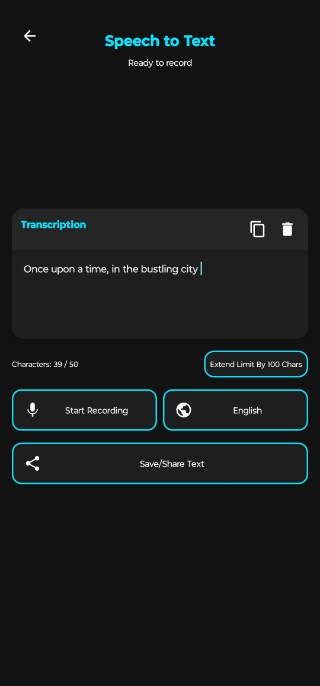 حوّل كلامك بسهولة إلى نص مكتوب، أو حوّل أي نص إلى صوت واقعي مولّد بالذكاء الاصطناعي، مع هذا التطبيق القوي لتحويل الكلام والنص! سواء كنت بحاجة إلى تحويل دقيق للكلام للملاحظات أو التعليقات التوضيحية أو النسخ، أو ترغب في إنشاء تعليقات صوتية احترافية، فهذا التطبيق هو خيارك الأمثل لمنشئي المحتوى، الطلاب، المهنيين، ومستخدمي أدوات الوصول.