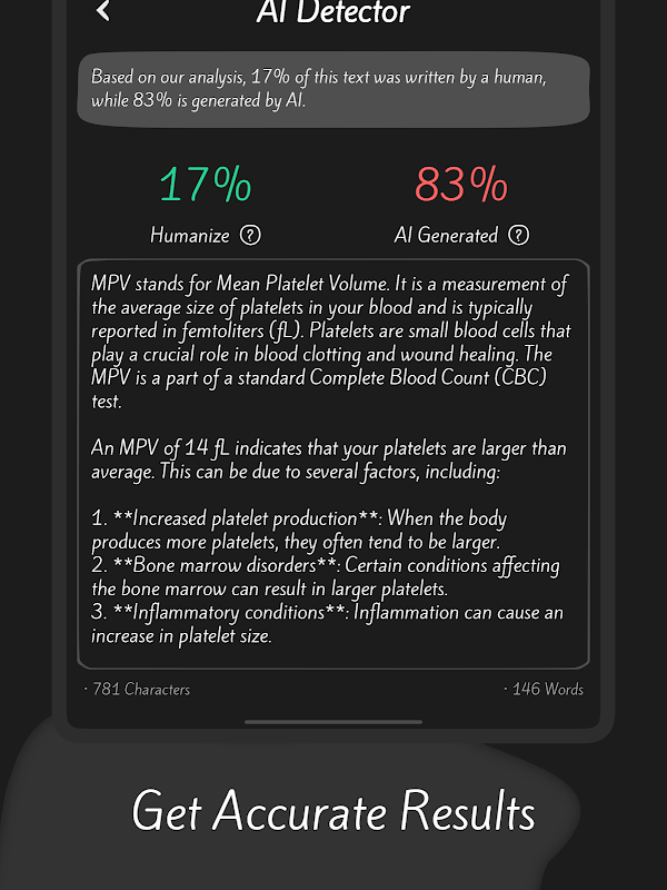 قم بتنزيل تطبيق AI Detector الآن واختبر مستقبل التحقق من المحتوى باستخدام تقنية البرمجة اللغوية العصبية (NLP) المتطورة. تأكد من صحة المحتوى الخاص بك والبقاء في المقدمة في العصر الرقمي.