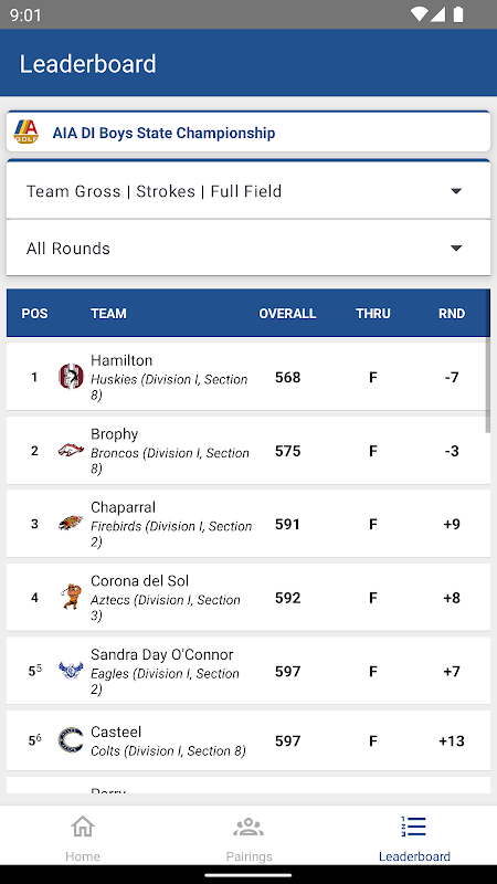 نحن الجمع بين سطح المكتب وتطبيق التكنولوجيا المتنقلة في شراكة مع الرابطة بين المدارس أريزونا (AIA) للسماح للاعبي الغولف والمدربين والمديرين الرياضيين والمتفرجين من جميع أنحاء العالم لعرض المتصدرين الحية خلال بطولات الجولف في المدرسة الثانوية. في يوم المباراة، ودخل العشرات في موقعنا واجهة التسجيل سهلة الاستخدام لتمكنك المتفرجين والمنافسين تتبع جولة الخاص بك في الوقت الحقيقي.
