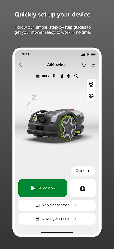 جرين وركس آي مو بوت هي جزازة عشب آلية ذكية تعمل بدون أسلاك محيطية متشابكة. سهلة الاستخدام للغاية، وتساعدك في الحفاظ على حديقة جميلة بينما تسترخي وتستمتع بوقت فراغك. مع تطبيق جرين وركس آي مو بوت الذكي، يمكنك:
