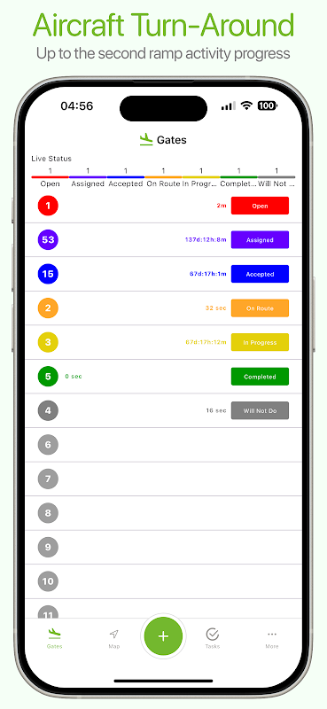 إدارة المهام المركزية: تتم إدارة جميع الطلبات المتعلقة بالمطار وجدولتها وتعيينها للموظفين، ويمكن عرضها في لوحة معلومات سهلة الفهم. يمكن للمديرين تعيين المهام ومراقبة التقدم وتحديد الأولويات لفرقهم في الوقت الفعلي، مع إرسال إشعارات الدفع إلى الموظفين المتأثرين.