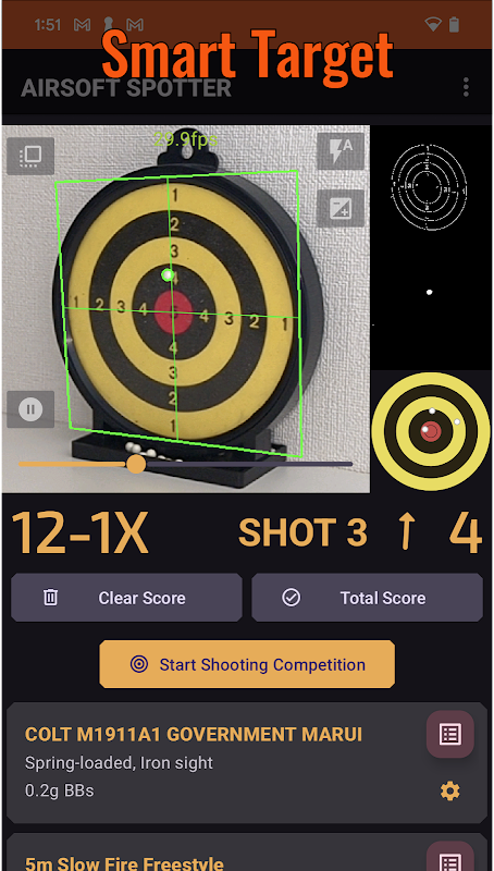 - Remote camera support: With two smartphones, use one to capture the target and keep the other with you to check scores and operate the app.