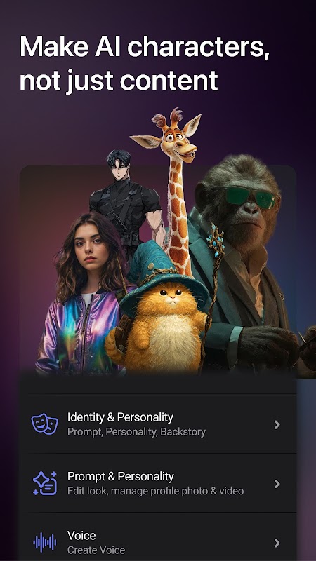 - حرية إبداعية لا حدود لها: كن أي شخص. كن متعددًا. كن غير مألوف. تحرر من قيود العالم الحقيقي مع شخصيات تُعبّر عن أفكار تتجاوز صورتك. من الشخصيات الأصلية إلى الشخصيات المستوحاة من الثقافة، والمستوحاة من القصص والعالم من حولك، أفكارك هي الأهم.