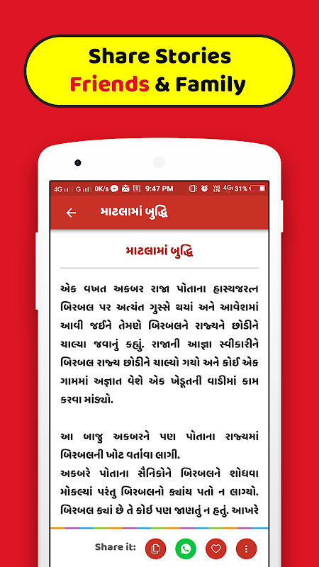 Akbar Birbal Stories in Gujarati (અકબર બીરબલ વાર્તા) App is best collection of Akbar Birbal Stories in Gujarati. We provides best user friendly application.. By reading a Akbar-Birbal story from this app every day, you can help your kids build values, as well as improve their reading conception skills.