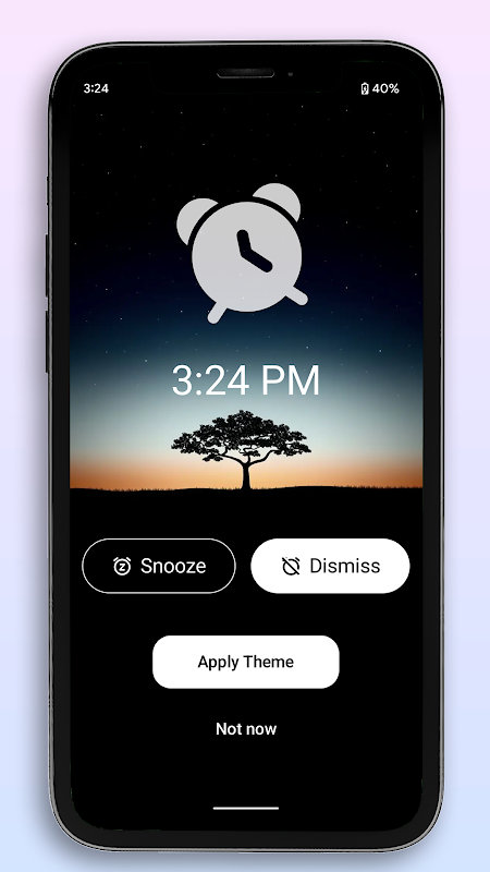 - تعديل السمة: قم بتخصيص شاشة المنبه أثناء التنقل، مما يضمن أنها جاهزة لمطابقة تفضيلاتك لجلسة الاستيقاظ التالية.