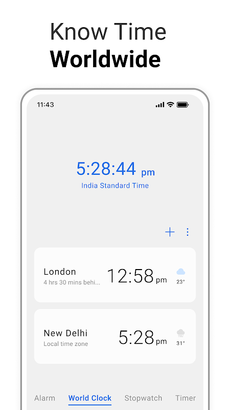 يوفر تطبيق الساعة وظائف المنبه والساعة العالمية وساعة الإيقاف والمؤقت، مما يساعدك على إدارة وقتك بفعالية. بالإضافة إلى ذلك، يمكنك التحقق من الطقس حسب المدينة، مما يجعلها أداة متعددة الاستخدامات للاستخدام اليومي.
