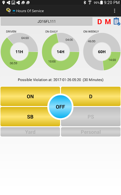 -When the truck is stationary for 5 minutes or more, it will default to on-duty not driving and the driver must enter the proper status
