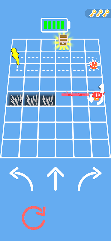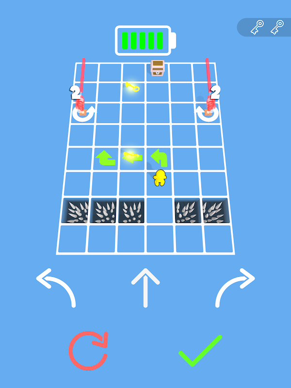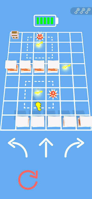 It's time to go for the treasure chest! But before you can get to it, you have to help your hero find the golden key! To find the key, you need to go around the walls and not fall into the thorns!