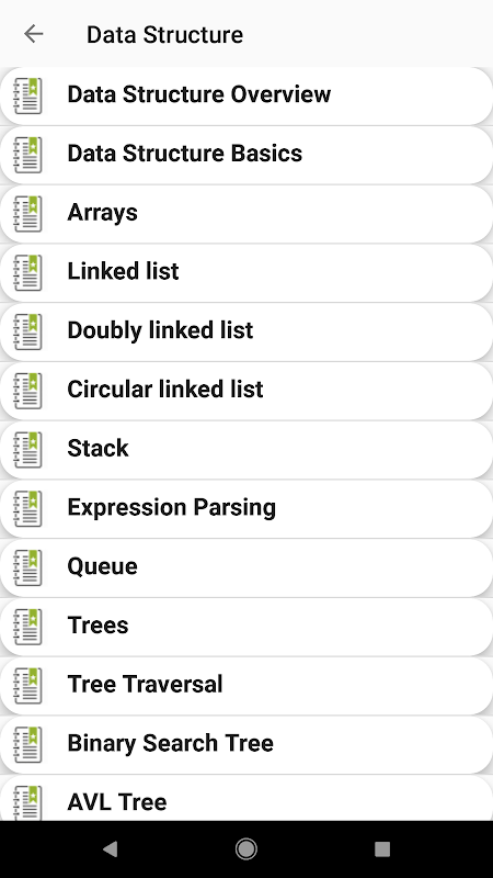 التطبيق عبارة عن كتيب مجاني كامل لهيكل البيانات والخوارزميات والذي يغطي موضوعات مهمة وبرامج وبعض أسئلة المقابلات ، ولديهم أيضًا اختبار عبر الإنترنت لإجراء مراجعة أفضل وسريعة للمهارات.