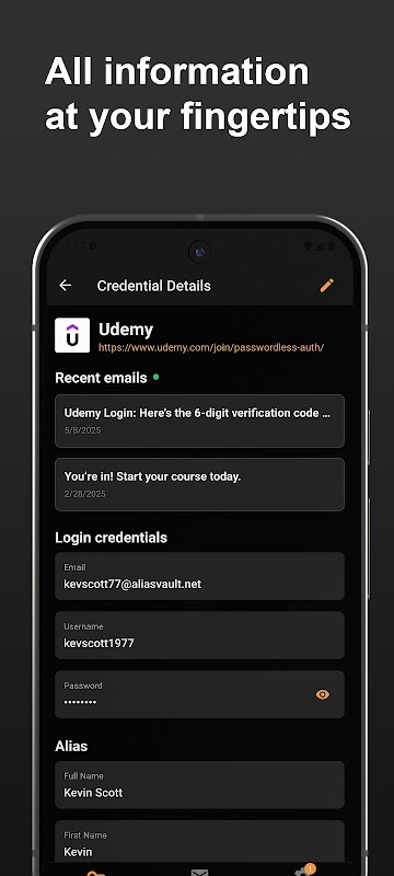 يُتيح لك AliasVault لأجهزة أندرويد الوصول الآمن إلى كلمات مرورك وأسماء البريد الإلكتروني المُستعارة أثناء التنقل. أنشئ أسماء مستعارة واستخدمها بسلاسة مباشرةً على مواقع الويب، مع دعم كامل لميزة الملء التلقائي المُدمجة في أندرويد، دون الحاجة إلى نسخ أو لصق.