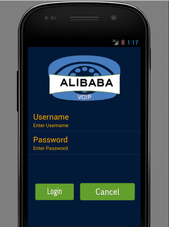 Alibaba is a VoIP client for Android. It works over Wi-Fi, 3G or LTE. Support for high quality g729, g722 and Opus codecs.