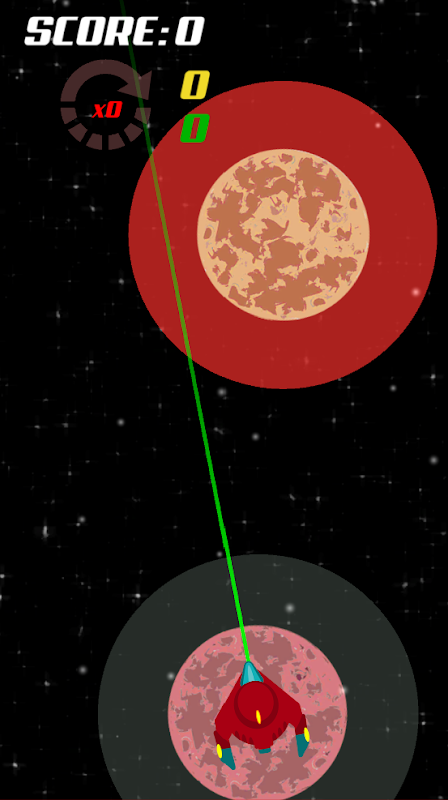 · اضغط على أي مكان على الشاشة لتثبيت الكوكب في مكانه وإطلاق سفينتك الفضائية.