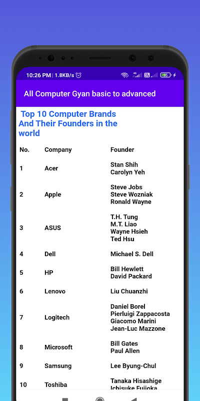 يحتوي هذا التطبيق على معرفة كل شيء عن الكمبيوتر