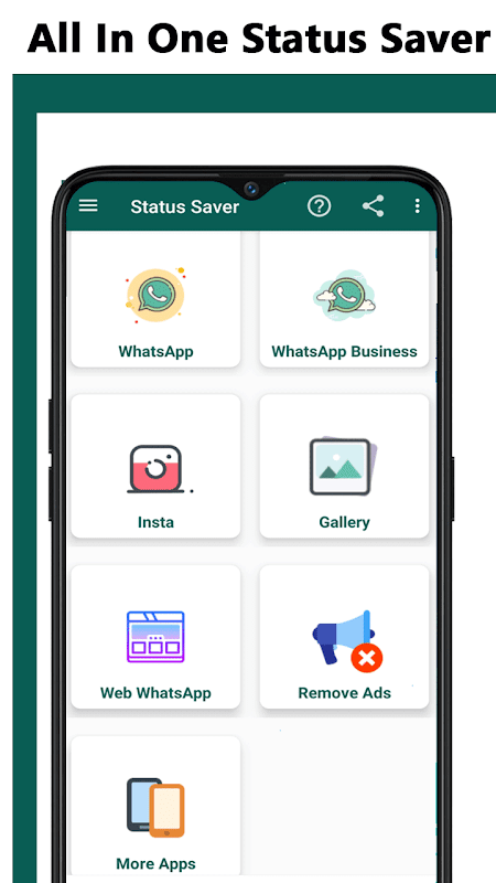 Open the all in one app. select what’s icon to save status from what’s. you can save image status and video status.