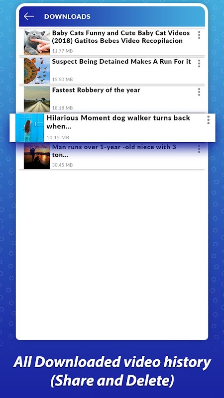 App provides easy and fast downloading all supported videos and social media clips from any social web and the most wanted video sites and then saving it into your device.
