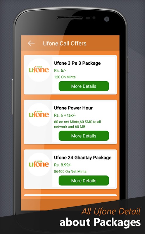 يوفر تطبيق باقات شرائح الجوال معلومات شاملة عن جميع الباقات، بما في ذلك المكالمات والرسائل النصية والإنترنت (3G و4G) والعروض الدولية. يمكن للمستخدم العثور بسهولة على باقات شرائح الجوال لجميع شركات الاتصالات الباكستانية، مثل موبي لينك (جاز) وتيلي نور وزونغ ويو فون، بالإضافة إلى عروض واريد، مثل عرض "Sim lagao" وغيرها. الآن، لستم بحاجة إلى حفظ رموز التفعيل الطويلة، فبإمكانكم تفعيل أي باقة أو عرض ترغبون به مباشرةً من داخل التطبيق. يتضمن هذا التطبيق جميع العروض الحالية، سواءً كانت بالساعة أو اليوم أو الأسبوع أو الشهر أو السنة، لأرقام الدفع المسبق والآجل لجميع الشبكات.