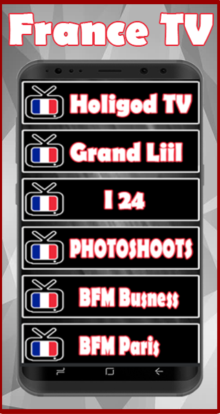 أول واحد هو "FranceTV" ، يحتوي تلفزيون فرنسا على 19 قناة تلفزيونية حية ، كل تلفزيون هو بث مباشر يبث محتوى مختلفًا ، والأخبار التلفزيونية ، والرياضة ، والأفلام التلفزيونية ، والبرامج التلفزيونية ...