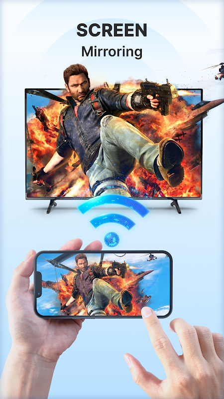 📲 البث من الهاتف: أرسل مقاطع الفيديو والصور والموسيقى من هاتفك الذكي الذي يعمل بنظام أندرويد إلى شاشة التلفزيون. استمتع بانعكاس شاشة هاتفك وانعكاس سلس للشاشة.
