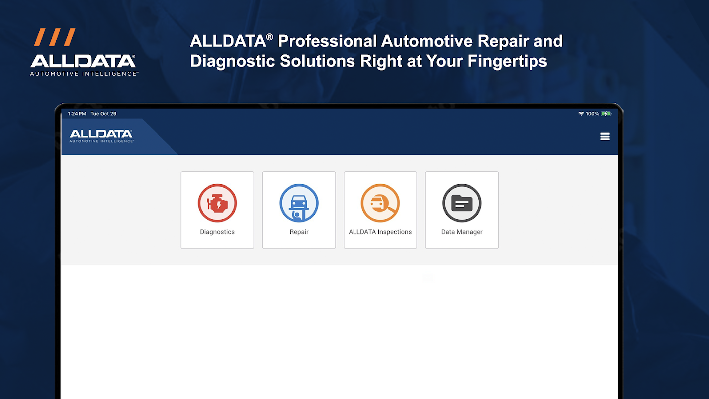 تقدم ALLDATA ، المزود الرائد لمعلومات التشخيص والإصلاح لمحترفي خدمة السيارات ، طريقة جديدة للوصول إلى معلومات الإصلاح. تتوفر ALLDATA Mobile للمشتركين المحترفين ، وهي معلومات إصلاح يتم تقديمها من خلال الراحة والموثوقية والمتانة والتكلفة التشغيلية المنخفضة لتقنية الأجهزة اللوحية / التطبيقات اليوم. يتيح ALLDATA Mobile للمستخدمين التنقل عبر شبكة معلومات جديدة مصممة خصيصًا لشاشة اللمس ، ومع الأجهزة المعتمدة ، يربط البيانات من المركبات OBDII Port مباشرة إلى معلومات إصلاح ALLDATA.