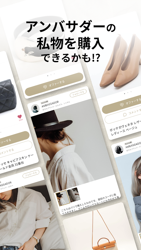 أكبر تشكيلة من العلامات التجارية الراقية في اليابان! "سوق أزياء ألو". سوف تتلقى "عرض شراء" من شخص مهتم بالعنصر الذي تملكه. على العكس من ذلك، يمكنك أيضًا إرسال "عرض شراء" إلى مالك السلعة (الشيء) الذي تهتم به. بالإضافة إلى طريقة الشراء التقليدية من المتجر الإلكتروني، فمن خلال السماح للمستخدمين بالشراء والبيع مع بعضهم البعض، فإننا ندعم تداول البضائع لمن يريدها.
