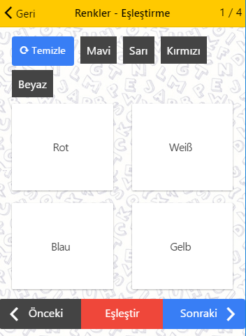 3-التوأمة: إجابات لمحاولة عشوائيا لتتناسب مع الألمانية كلمة 4 كلمة 4 من التركية. إزالة أي عدم التطابق وحاول مرة أخرى.