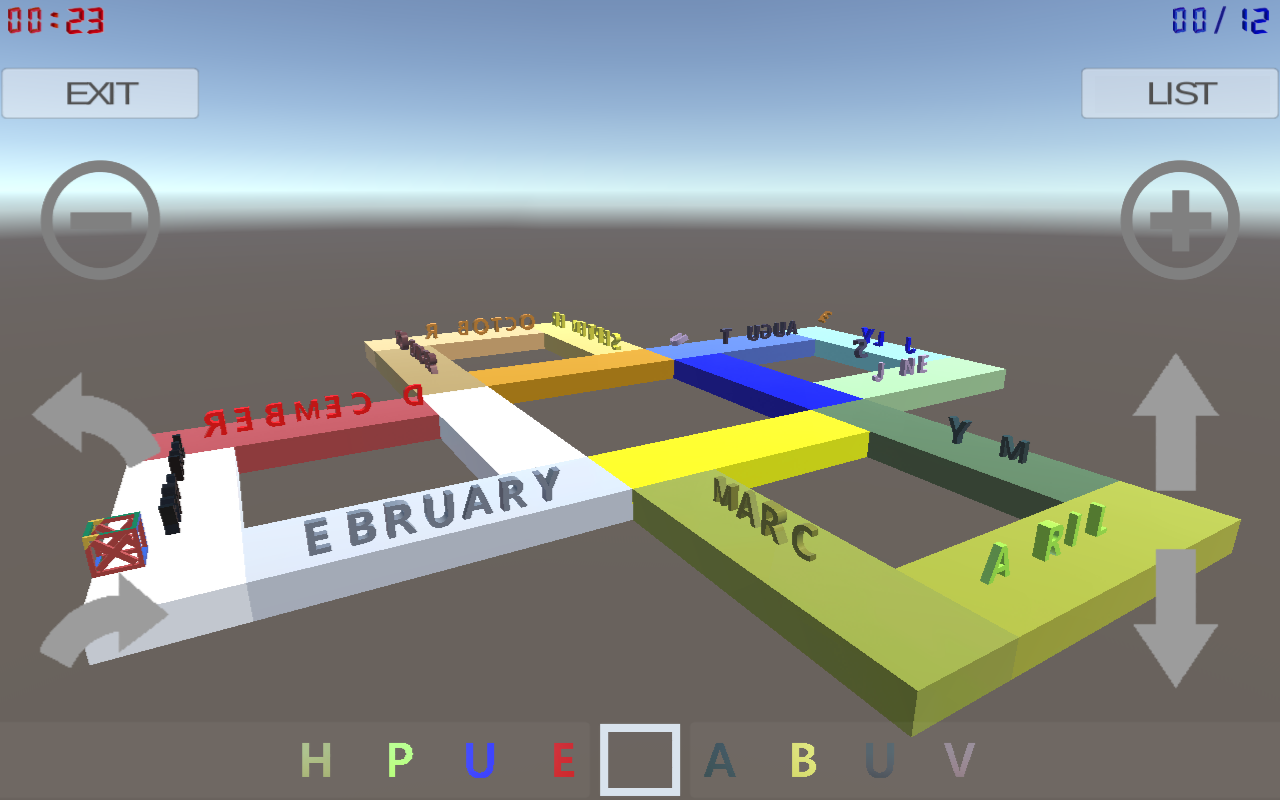 ・キューブを操作して、英単語から逃げ出したキャラクターを捕まえます。