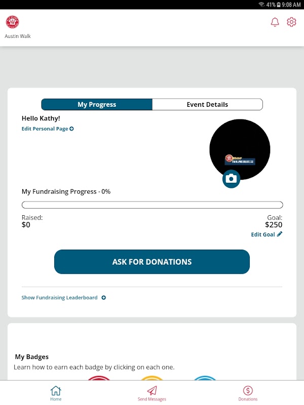 قم بجمع التبرعات أثناء التنقل باستخدام تطبيق Walk to Defeat ALS الخاص بك. حدِّث صفحتك الشخصية ، وأرسل رسائل بريد إلكتروني ، وتحقق من تقدمك واتصل بـ Google Fit لتتبع نشاطك البدني - كل ذلك من راحة يدك.