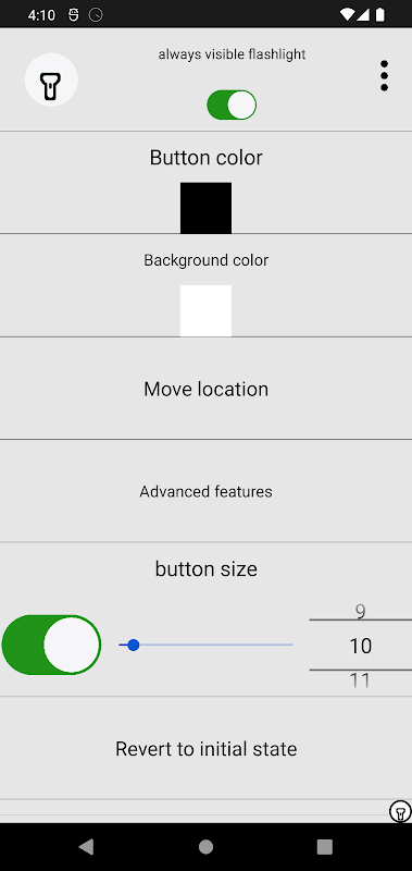 يمكنك تشغيل وإيقاف المصباح اليدوي عن طريق وضع زر على الشاشة. يمكنك إيقاف تشغيل الفلاش تلقائيًا بعد فترة زمنية معينة.