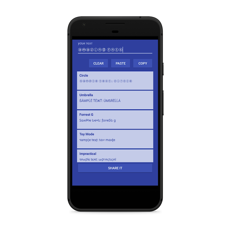 You can type message in Cool Amazing Fancy Text fonts with the selected font and Copy. You can paste copied text in any other apps or use Share Option. Use these fonts in Instagram. Just type message in app & Copy. Then you can open Instagram App and paste it any where you want. Share your great ideas, suggestions to your friends with funny text messages. You can paste it to the bio. Then your bio looks different.