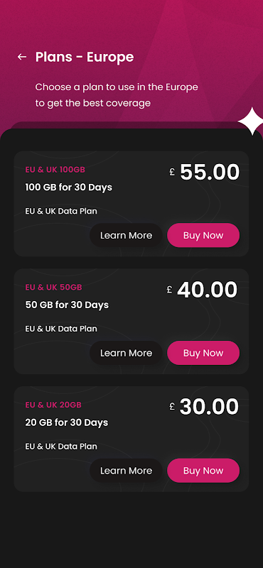 سافر مثل أحد السكان المحليين مع صديقك. ابق على اتصال أثناء التنقل، بدون عقود، وخطط بيانات لجميع أنواع المستخدمين وبأسعار رائعة. لا داعي لإخراج شريحة الاتصال المنزلية الخاصة بك واستبدالها عند سفرك إلى المملكة المتحدة و25 دولة في الاتحاد الأوروبي.