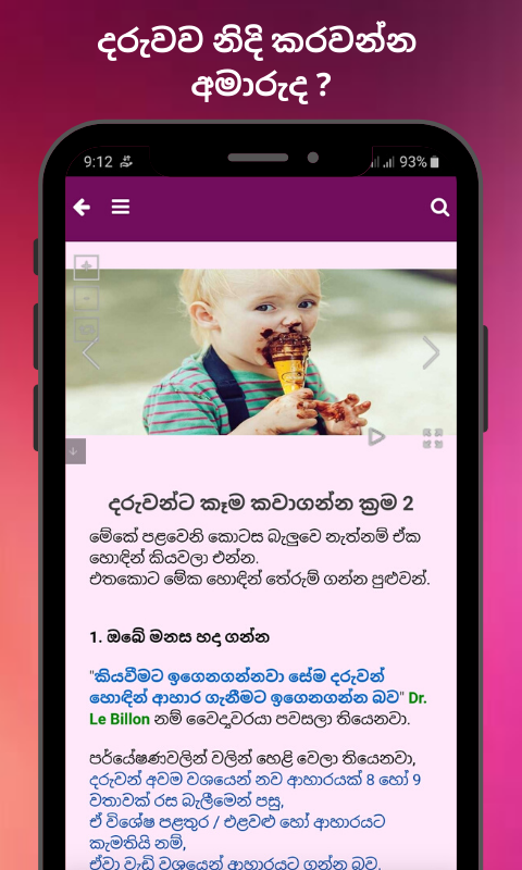ඔයාගේ දරුවාට කෑම කවාගන්න අමාරුයි නම්. නිදි කරවගන්න අමාරුයි නම්. මේ වගේ දේවල් කරන්න අමාරුයි නම් ඒවට විසඳුම් මේ Ammage Baba (අම්මගේ බබා) App එකේ තියෙනවා.