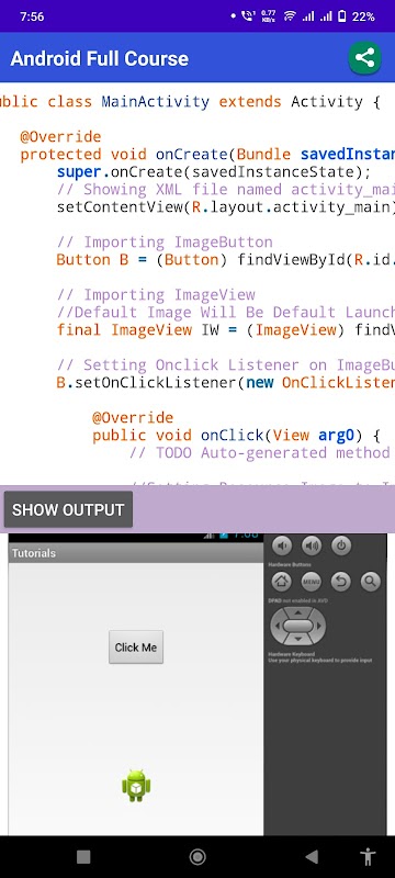 This application contains examples of all the components of Android with demo and source code. It is one stop application for learning as well as developing application.