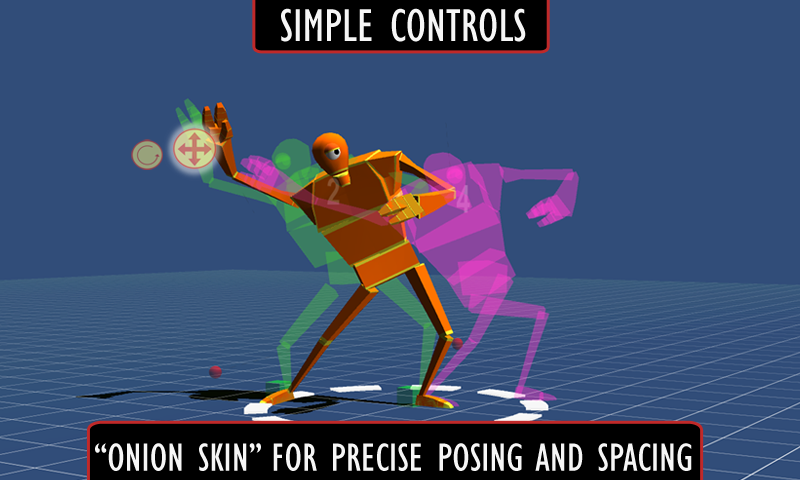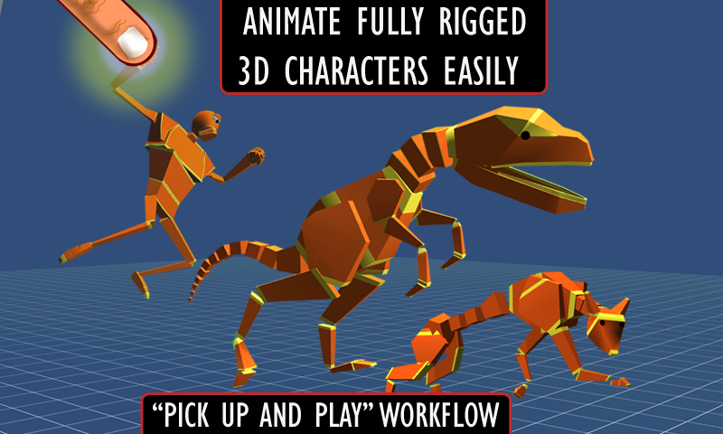 تحريك الشخصيات 3D من خلال طرح 5 الأحرف الموجودة في الفضاء 3D مع واجهة بسيطة وسهلة سير العمل، على عكس برامج معقدة والراقية مثل مايا أو 3DS ماكس.